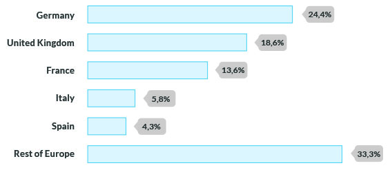 En el caso del mercado Europeo, España es el quinto país en valor de mercado del continente, solo por debajo de Alemania, Reino Unido, Francia e Italia, y por lo tanto las empresas españolas han sabido dar con el nicho de mercado de las herramientas libres para empresas, principalmente en la gestión financiera y de clientes.